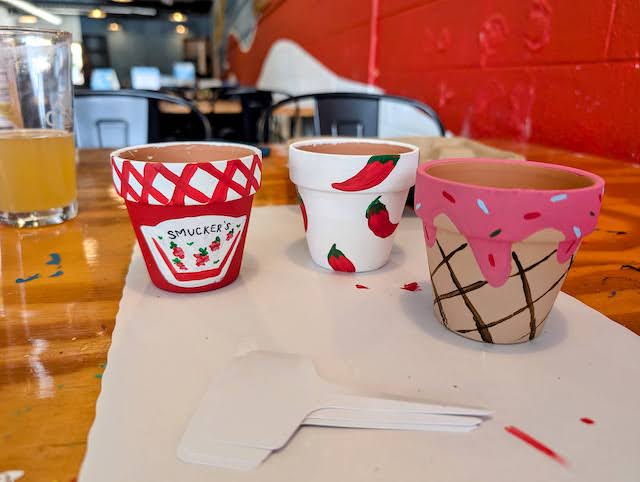 In keeping with our mission to make crafting more sustainable, our kits are intended to be completed on site using shared paints and tools that are reused until their end of life. If you are interested in crafts to-go, we do have a retail section with kits offered by independent makers.
